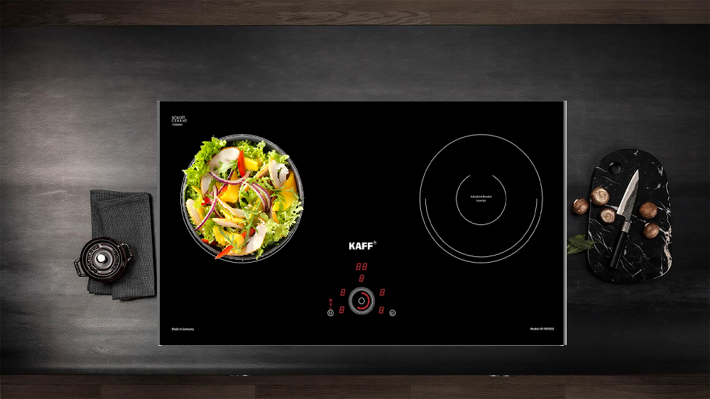 – Thiết kế vô cùng đẹp mắt với màu đen sang trọng cùng sự kết hợp với 2 vùng nấu, phù hợp với nhu cầu nấu nướng của đa số các gia đình ở nước ta. Có tới 10 dải nhiệt, việc lựa chọn chương trình nấu phù hợp trở nên đơn giản hơn bao giờ hết. Ngoài thiết kế ấn tượng, bếp từ Kaff KF-ROTE55 còn trang bị cho mình những linh kiện và công nghệ đột phá giúp phù hợp với khí hậu và nhu cầu nấu nướng của người Việt.