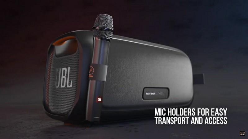 Lần đầu tiên, JBL tích hợp sẵn hai micro không dây cho một sản phẩm loa di động của mình. Các bạn cũng có thể chỉnh bass, treble, echo với nút tích hợp sẵn trên loa để đem lại chất âm tốt nhất.