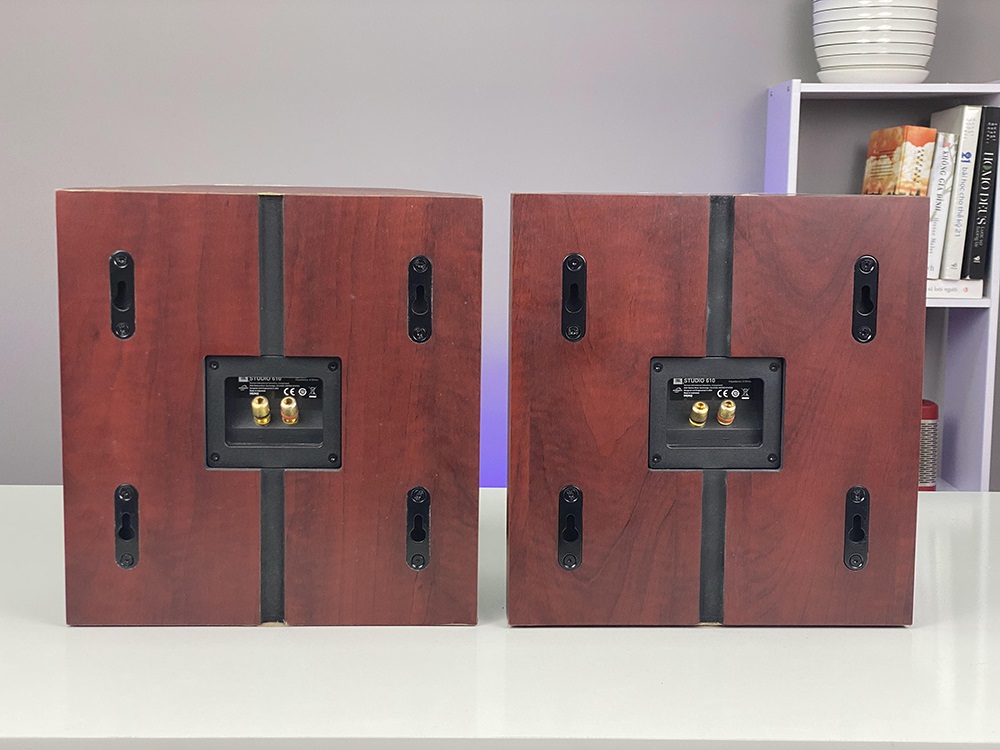 Loa Surround đa hướng JBL Studio 610 cho phép kết nối với amply đơn gian qua các cổng kết nối cao cấp mạ đồng phía sau.