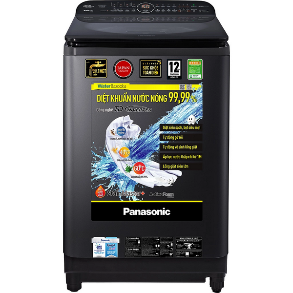 Máy giặt Panasonic cửa trên này còn được tích hợp công nghệ Active Foam thế hệ mới giúp tạo ra các bọt xà phòng đậm đặc, tăng cường hiệu quả giặt và không còn cặn bột giặt bám trên quần áo, hoạt động ngay cả ở nơi có áp lực nước thấp.